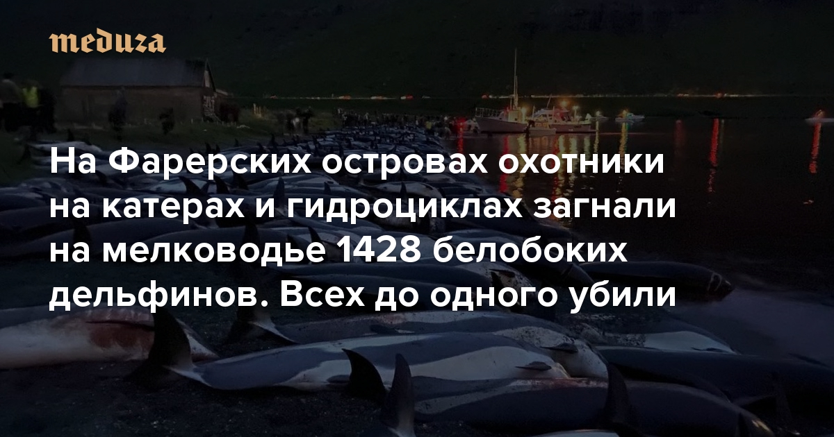 На Фарерских островах охотники на катерах и гидроциклах загнали на мелководье 1428 белобоких дельфинов. Всех до одного убили