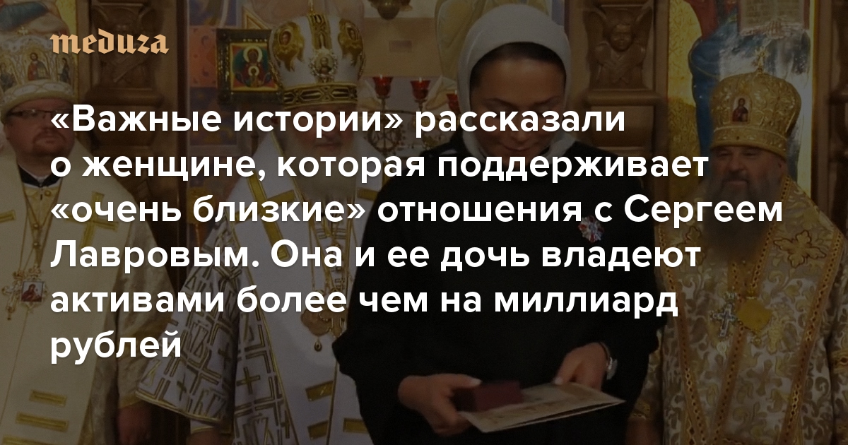 «Важные истории» рассказали о женщине, которая поддерживает «очень близкие» отношения с Сергеем Лавровым Она и ее дочь владеют активами более чем на миллиард рублей