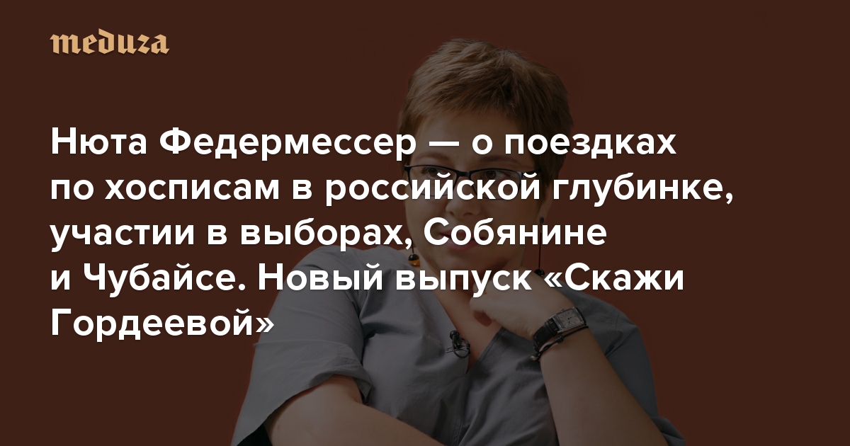 «Никто не боится смерти, все боятся умирания» Нюта Федермессер — о поездках по хосписам в российской глубинке, участии в выборах, Собянине и Чубайсе. Новый выпуск «Скажи Гордеевой»