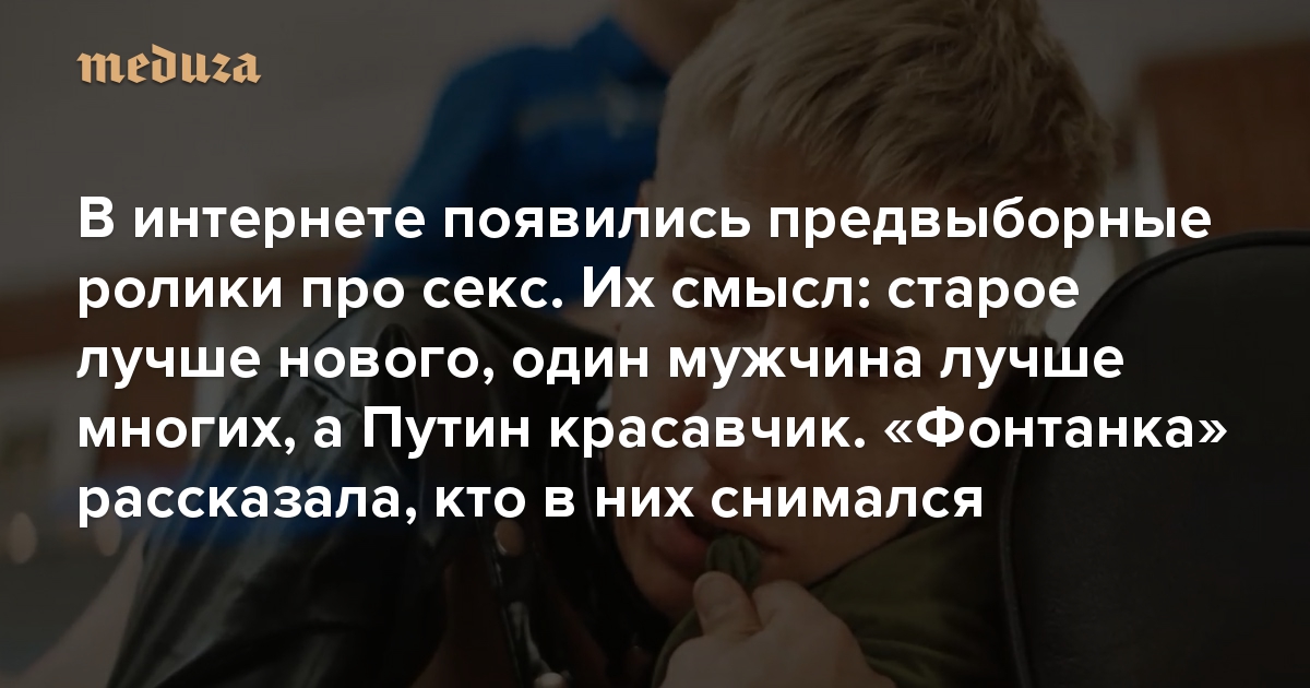В интернете появились (абсолютно кринжовые) предвыборные ролики про секс. Их смысл: старое лучше нового, один мужчина лучше многих, а Путин красавчик «Фонтанка» рассказала, кто в них снимался
