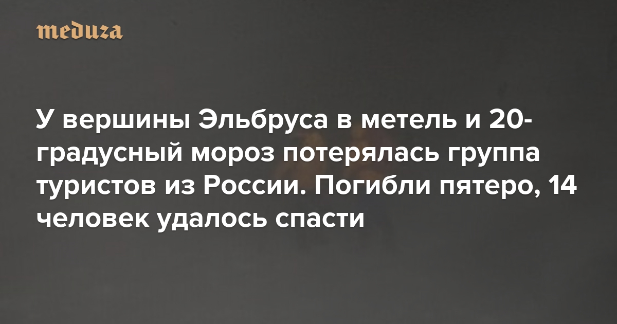 У вершины Эльбруса в метель и 20-градусный мороз потерялась группа туристов из России. Погибли пятеро, 14 человек удалось спасти