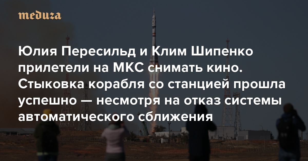 Актриса Юлия Пересильд и режиссер Клим Шипенко отправились к Международной космической станции (МКС). Они полетели на корабле «Союз МС-19» вместе с космонавтом Антоном Шкаплеровым, который является командиром экипажа. «Союз МС-19» стартовал с космодрома Байконур в 11:55 по московскому времени. Пересильд и Шипенко во время полета чувствовали себя хорошо.