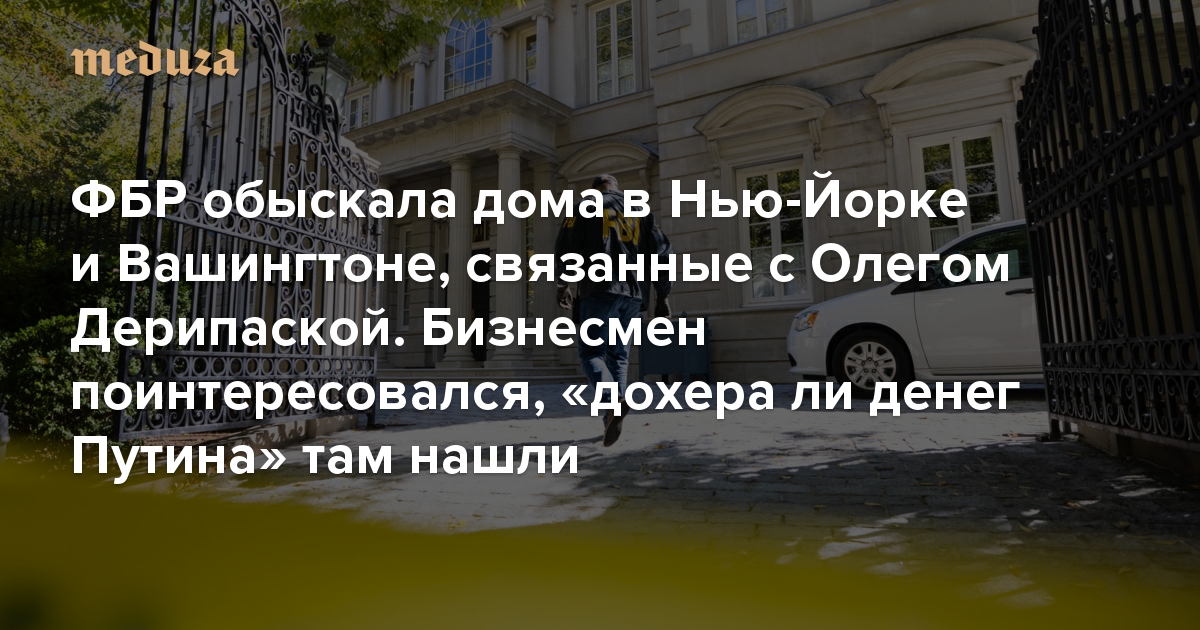 ФБР обыскала дома в Нью-Йорке и Вашингтоне, связанные с Олегом Дерипаской. Бизнесмен поинтересовался, «дохера ли денег Путина» там нашли