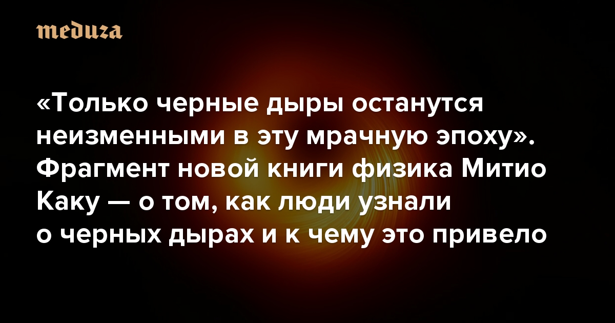 «Только черные дыры останутся неизменными в эту мрачную эпоху» Фрагмент новой книги физика Митио Каку — о том, как люди узнали о существовании черных дыр и к чему это привело