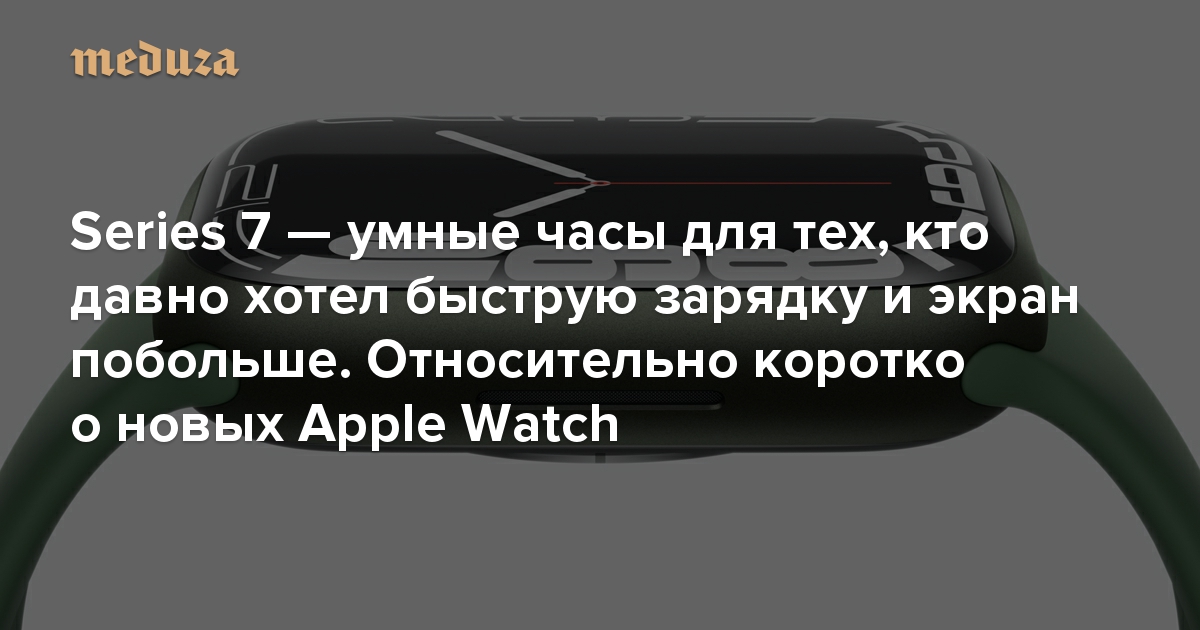 Apple выпустила новую модель умных часов Apple Watch Series 7. Журналист «Медузы» Максим Иванов неделю их тестировал и пришел к выводу, что не хочет писать точно такой же текст, что и в прошлом году (про Series 6). Ведь отличий не так уж и много! Поэтому относительно коротко рассказываем, кому понравятся новые часы, чем они лучше прошлогодних и нужно ли брать их прямо сейчас.