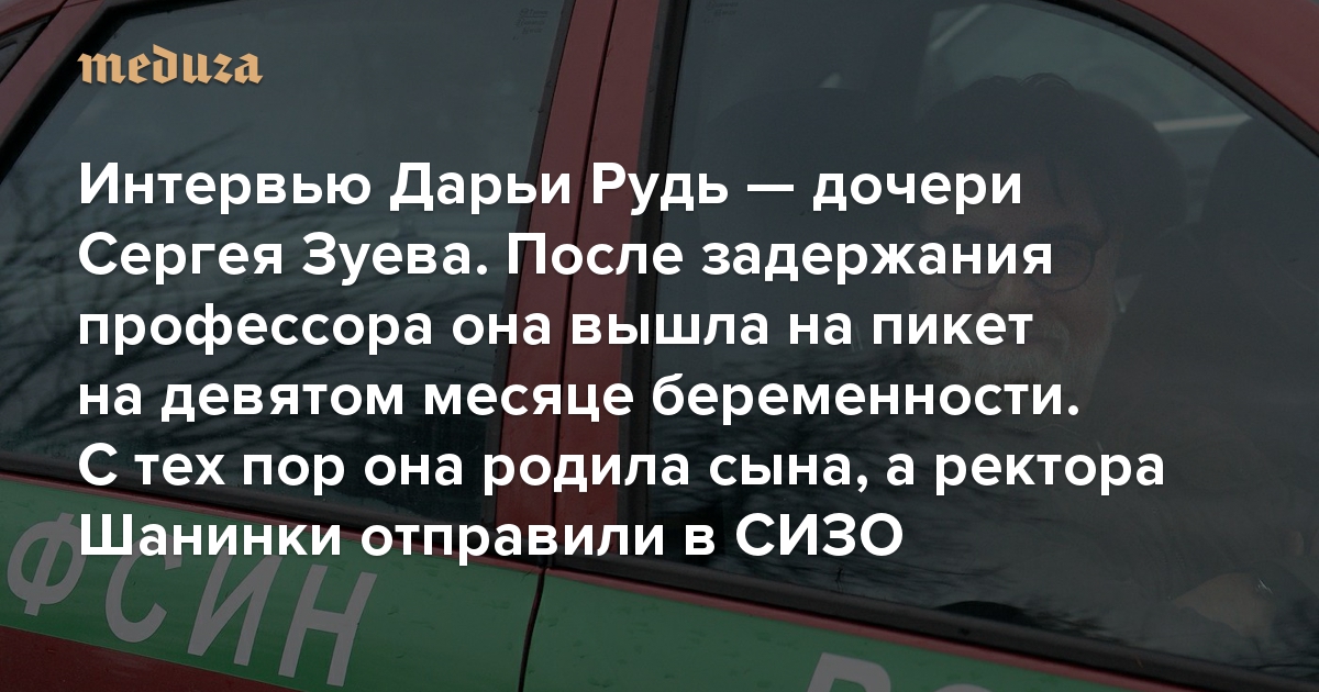 Мосгорсуд изменил меру пресечения ректору Шанинки Сергею Зуеву, обвиняемому в хищении 21 миллиона рублей. Вместо домашнего ареста, под которым профессор находился около месяца, Зуева отправили в СИЗО. В следственный изолятор его поместили, несмотря на серьезные проблемы со здоровьем (за последнее время Зуева несколько раз госпитализировали с гипертоническим кризом). О деле против ректора Шанинки «Медуза» поговорила с социологом Дарьей Рудь — дочерью Сергея Зуева. Сразу после задержания отца она вышла на одиночный пикет, будучи на девятом месяце беременности.