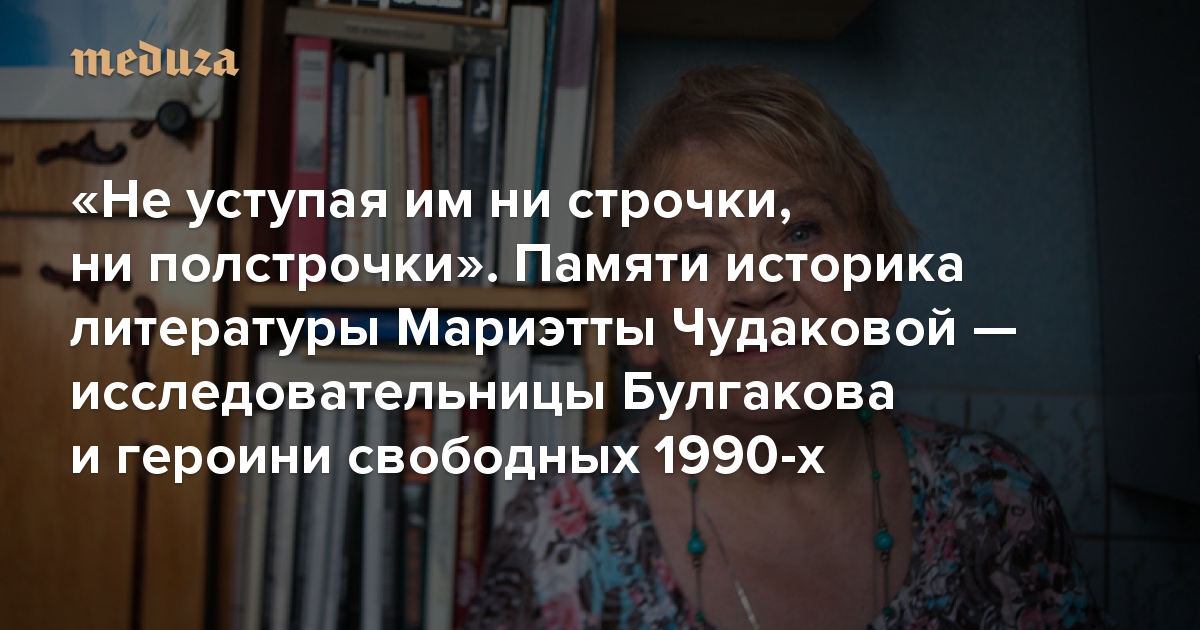 Не уступая им ни строчки, ни полстрочки Памяти историка литературы Мариэтты Чудаковой — исследовательницы Булгакова и героини свободных 1990-х