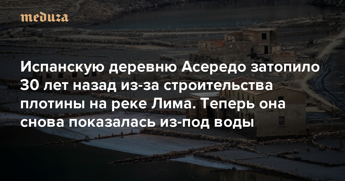 На северо-западе Испании из-под воды показалась деревня Асередо, затопленная 30 лет назад из-за строительства плотины Альто-Линдозо на реке Лима, которая протекает по территории Испании и Португалии. Когда власти двух стран договорились о ее совместном использовании, жители прибрежных деревень сначала отказались покинуть свои дома, но португальская гидроэнергетическая компания EDP убедила их принять компенсации и переселиться. В 1992 году Асередо и еще четыре деревни оказались на дне водохранилища. Когда уровень воды в нем понизился, руины Асередо снова стали видны.