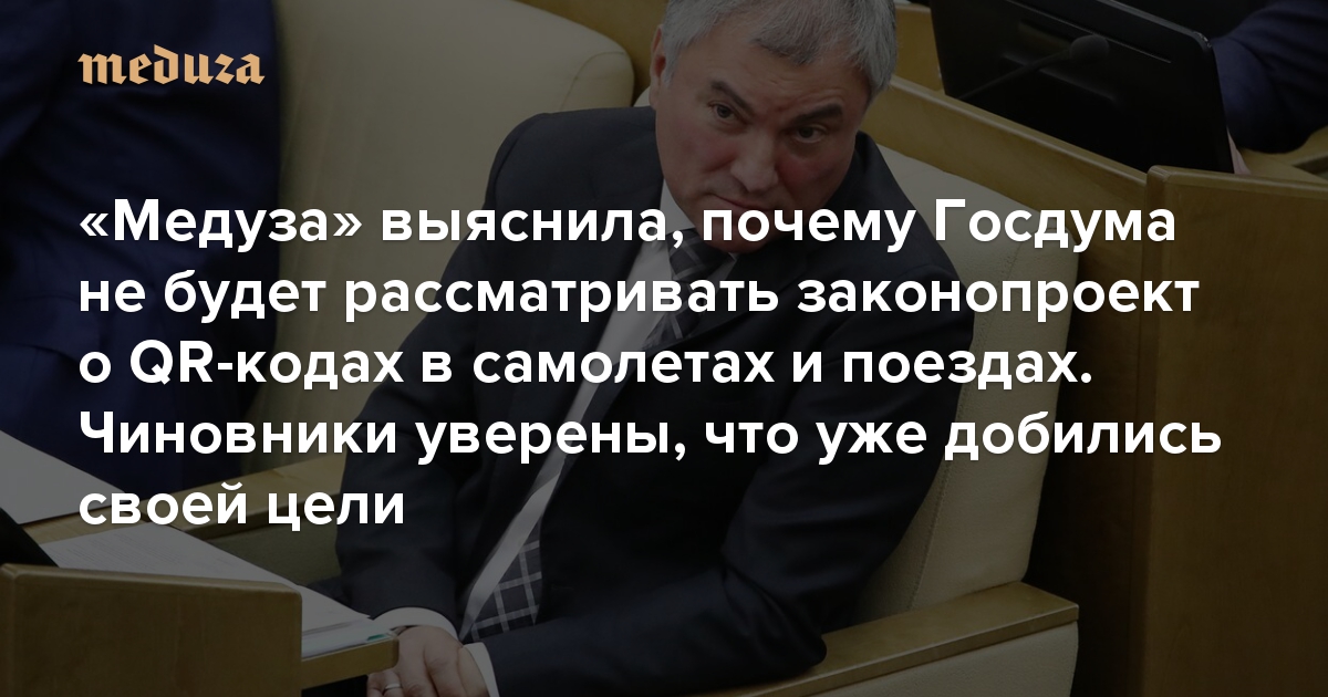 «Медуза» выяснила, почему Госдума не будет рассматривать законопроект о QR-кодах в самолетах и поездах. Чиновники уверены, что уже добились своей цели