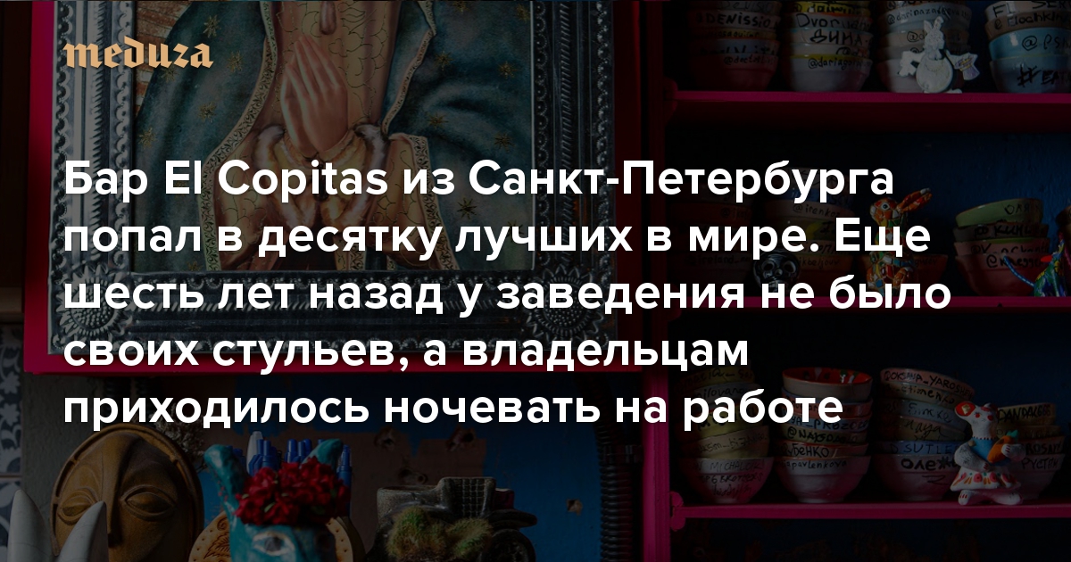 Бар El Copitas из Санкт-Петербурга попал в десятку лучших в мире Еще шесть лет назад у заведения не было своих стульев, а владельцам приходилось ночевать на работе