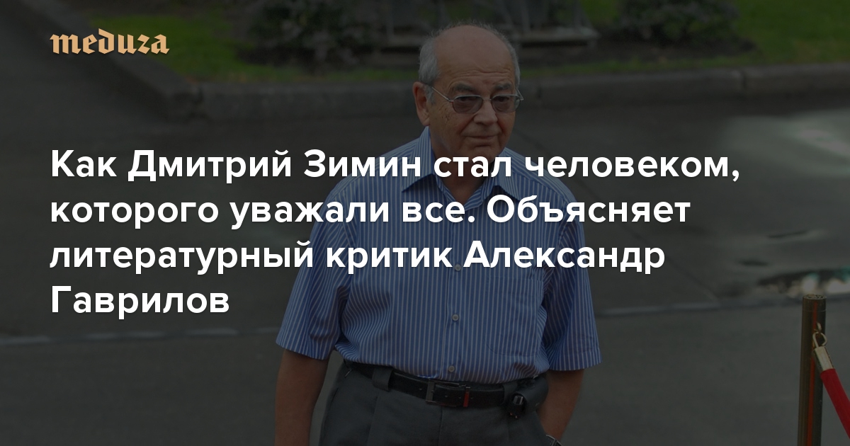 «Он шел прямо, всегда к цели и часто поперек» Как Дмитрий Зимин стал человеком, которого уважали все. Объясняет литературный критик Александр Гаврилов