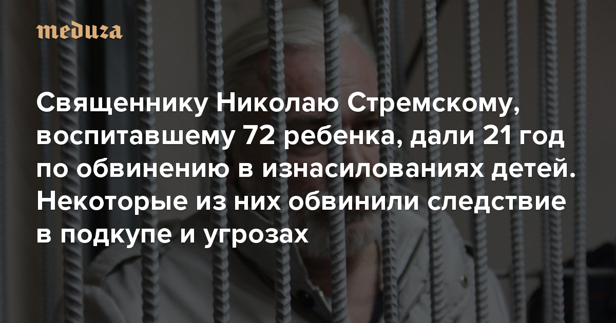Священнику Николаю Стремскому, воспитавшему 72 ребенка, дали 21 год по обвинению в изнасилованиях детей. Некоторые из них обвинили следствие в подкупе и угрозах