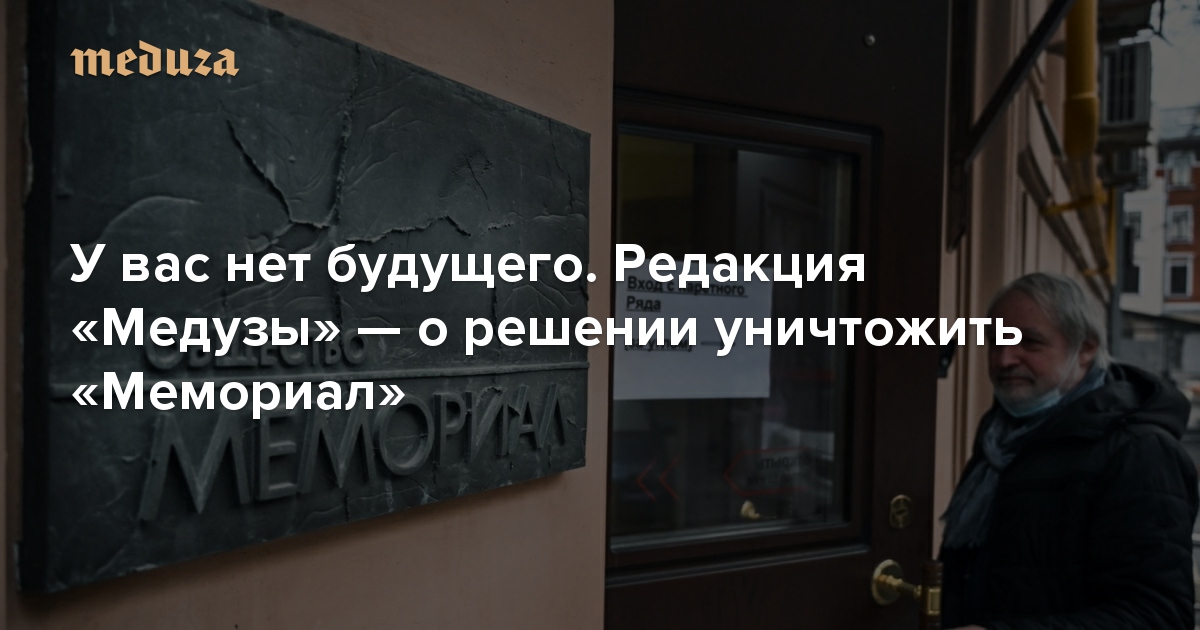 У вас нет будущего Редакция «Медузы» — о решении уничтожить «Мемориал»