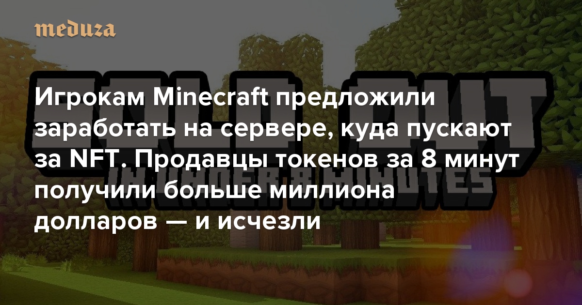 Игрокам Minecraft предложили заработать на сервере, куда пускают за NFT. Продавцы токенов за 8 минут получили больше миллиона долларов — и исчезли