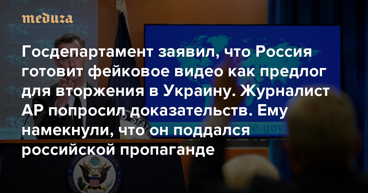 Госдепартамент заявил, что Россия готовит фейковое видео как предлог для вторжения в Украину Журналист AP попросил доказательств. Ему намекнули, что он поддался российской пропаганде