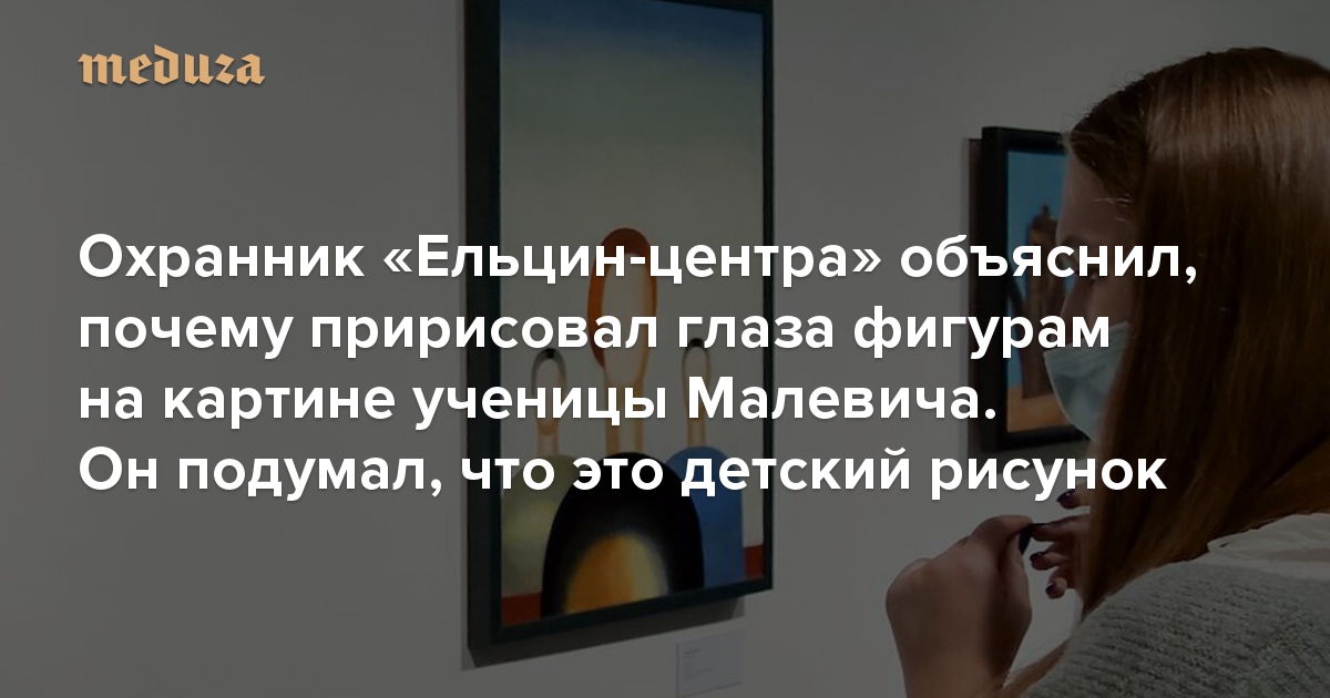 «Что я наделал?!» Охранник «Ельцин-центра» объяснил, почему пририсовал глаза фигурам на картине ученицы Малевича. Он подумал, что это детский рисунок