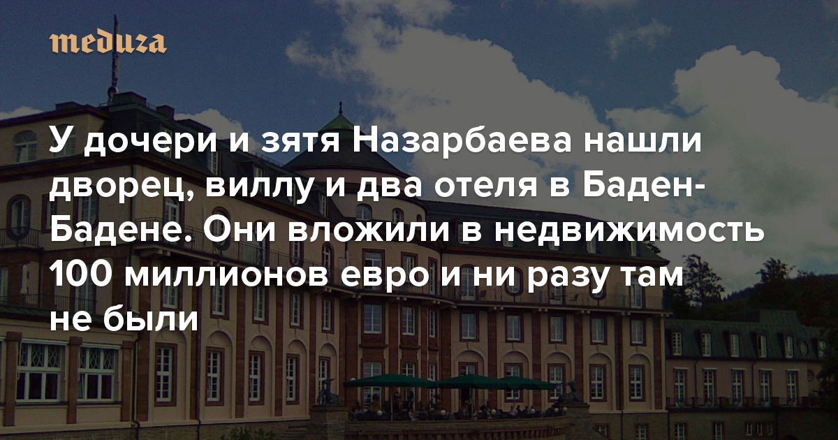У дочери и зятя Назарбаева нашли дворец, виллу и два отеля в Баден-Бадене Они вложили в недвижимость 100 миллионов евро и ни разу там не были. Главное из расследования Deutsche Welle