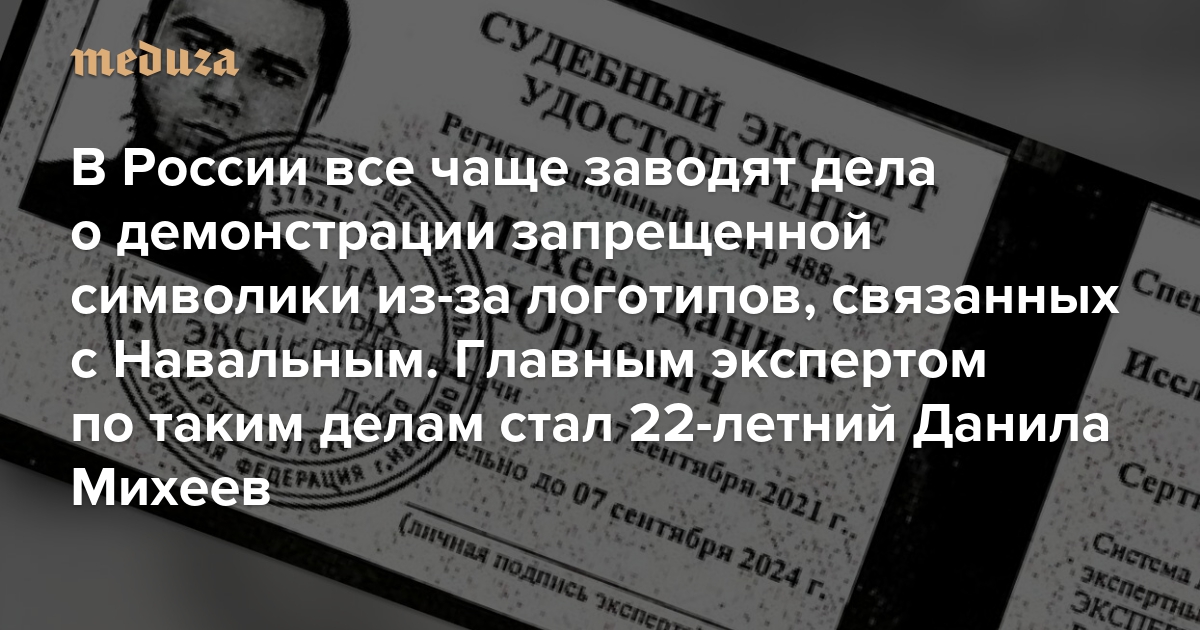 В России все чаще заводят дела о демонстрации запрещенной символики из-за логотипов, связанных с Навальным Главным экспертом по таким делам стал 22-летний Данила Михеев. Он пишет доносы со времен учебы в университете
