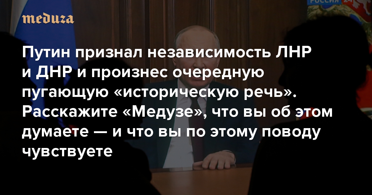 Путин признал независимость ЛНР и ДНР и произнес очередную пугающую «историческую речь». Расскажите «Медузе», что вы об этом думаете — и что вы по этому поводу чувствуете