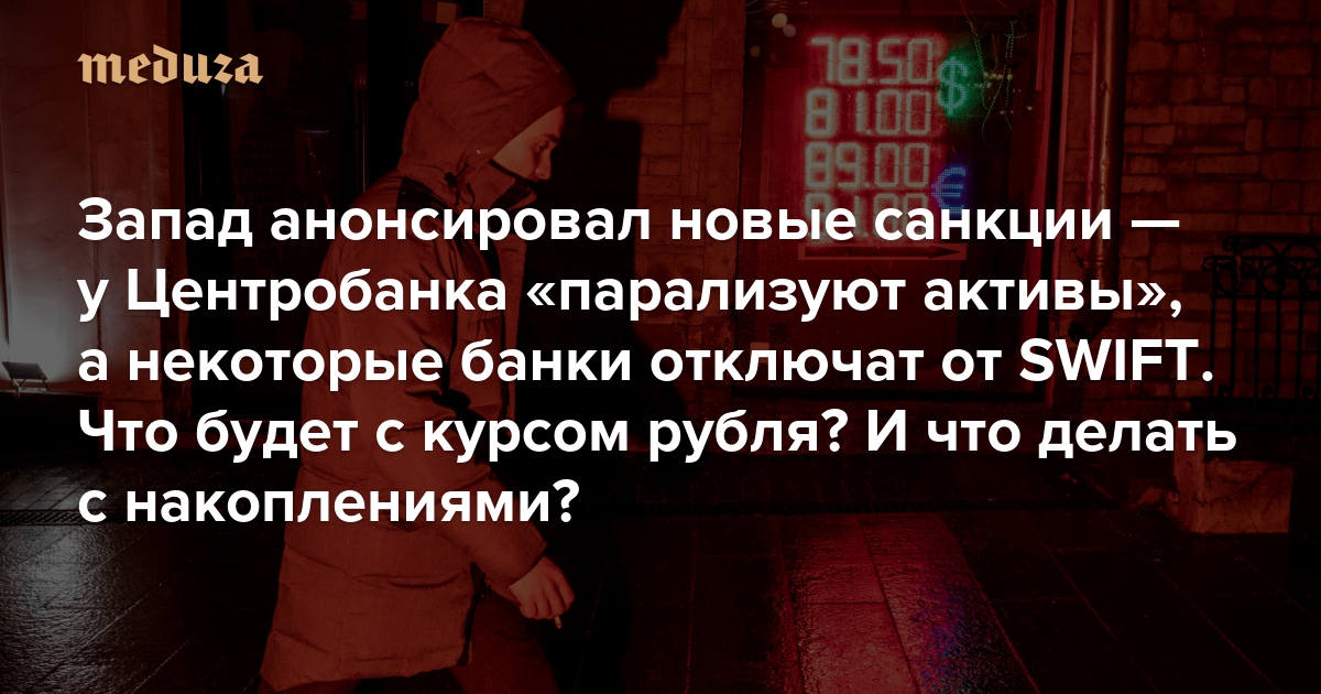Запад анонсировал новые санкции — у Центробанка «парализуют активы», а некоторые банки отключат от SWIFT. Что будет с курсом рубля? И что делать с накоплениями?