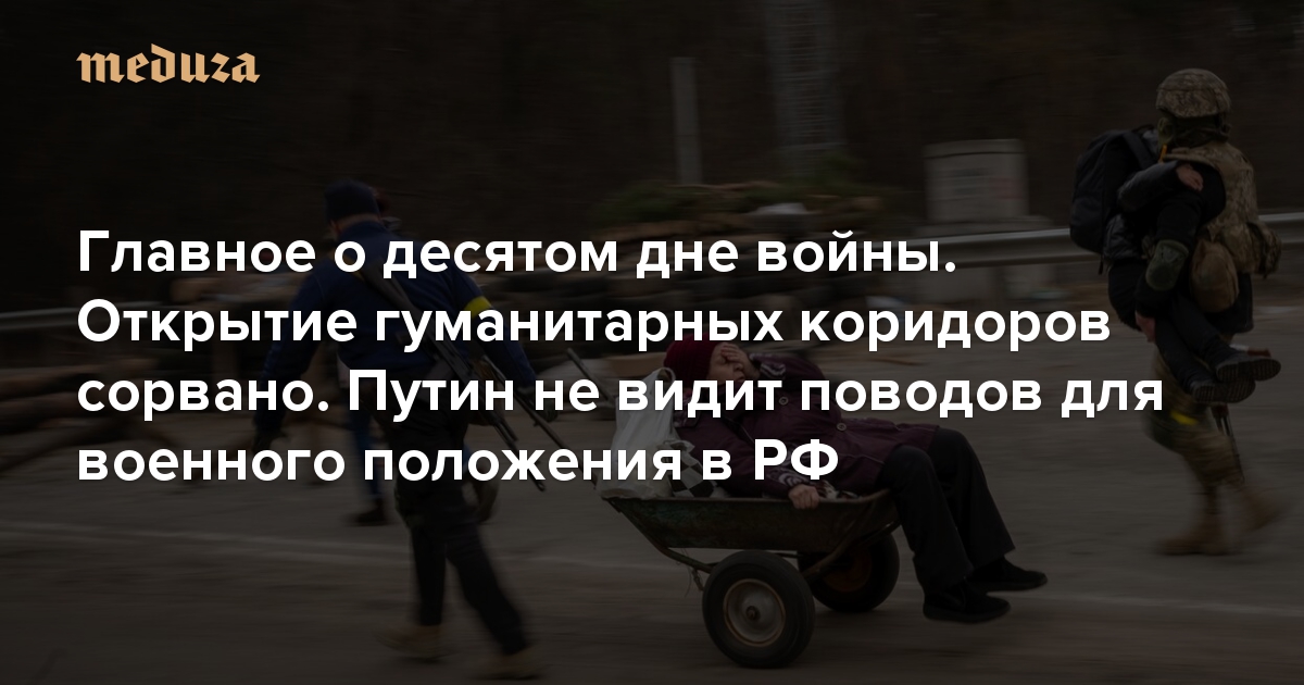 Открытие гуманитарных коридоров сорвано. Путин не видит поводов для военного положения в РФ Главное о десятом дне войны