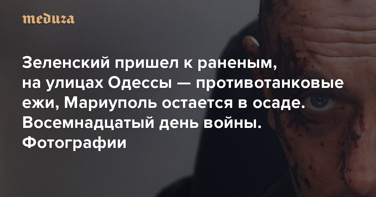 Восемнадцатый день войны. Фотографии Зеленский пришел к раненым, на улицах Одессы — противотанковые ежи, Мариуполь остается в осаде