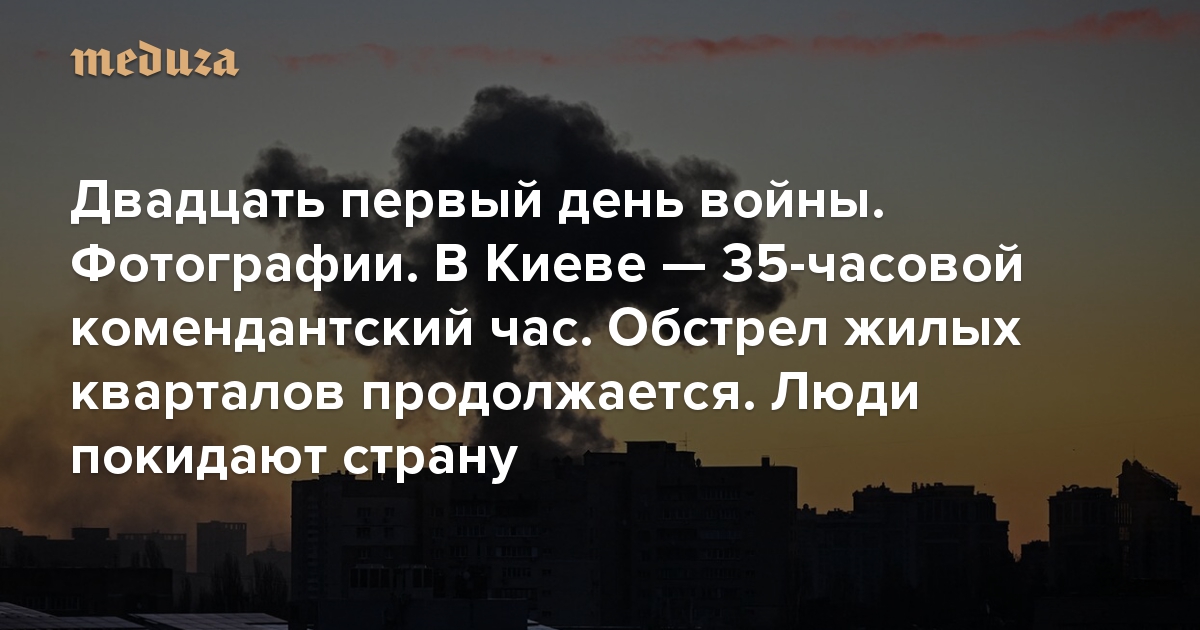 Двадцать первый день войны. Фотографии В Киеве — 35-часовой комендантский час. Обстрел жилых кварталов продолжается. Люди покидают страну