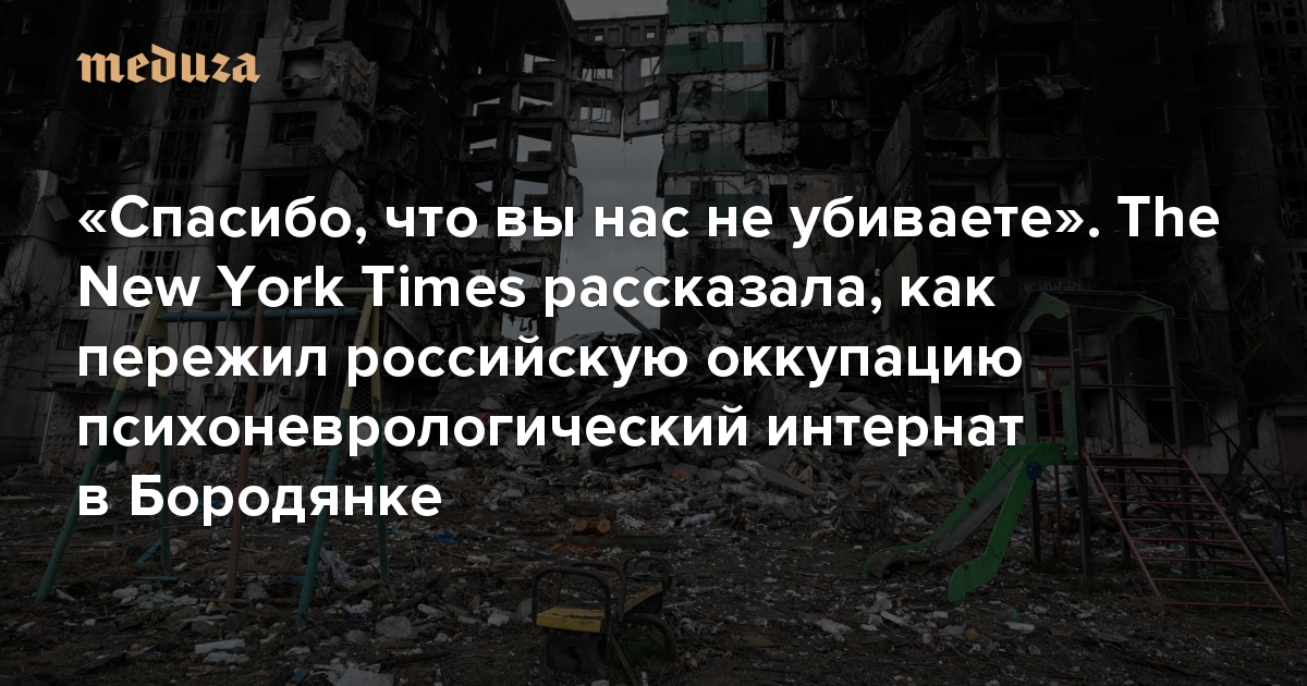 Поселок Бородянка, расположенный в 80 километрах к северо-западу от Киева, весь март находился под российской оккупацией. После страшных свидетельств о массовых убийствах в Буче, расположенной в том же районе, власти Украины заявили, что ситуация в Бородянке может оказаться еще хуже. Россияне захватили в поселке местный психоневрологический интернат, в котором проживали около 500 пациентов и сотрудников. Газета The New York Times узнала у бывшей заведующей школой 43-летней Марины Ганицкой, которая руководит больницей всего два месяца, как люди пережили оккупацию. «Медуза» пересказывает этот материал.