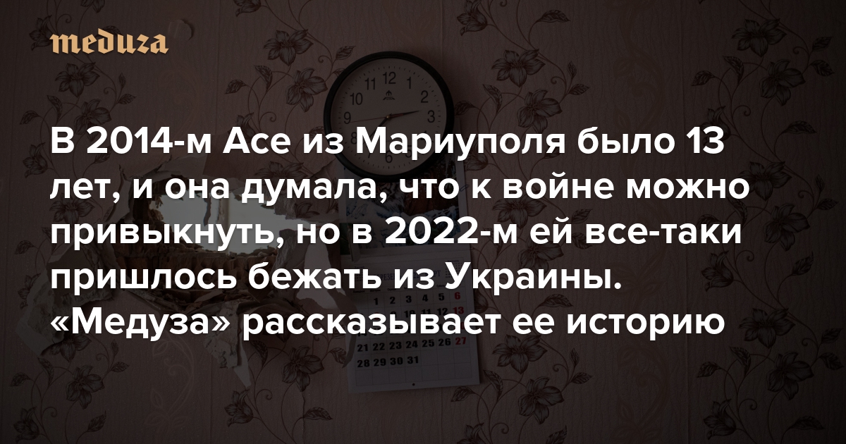 «Я продолжала всех убеждать, что рядом с войной можно жить» В 2014-м Асе из Мариуполя было 13 лет, и она думала, что к войне можно привыкнуть, но в 2022-м ей все-таки пришлось бежать из Украины. «Медуза» рассказывает ее историю
