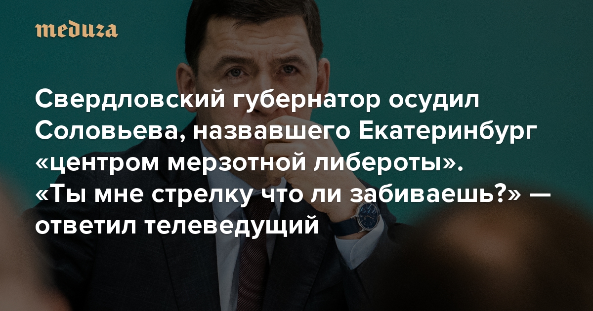 Свердловский губернатор осудил Соловьева, назвавшего Екатеринбург «центром мерзотной либероты». «Ты мне стрелку что ли забиваешь?» — ответил телеведущий