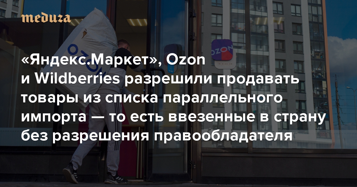 «Яндекс.Маркет», Ozon и Wildberries разрешили продавать товары из списка параллельного импорта — то есть ввезенные в страну без разрешения правообладателя