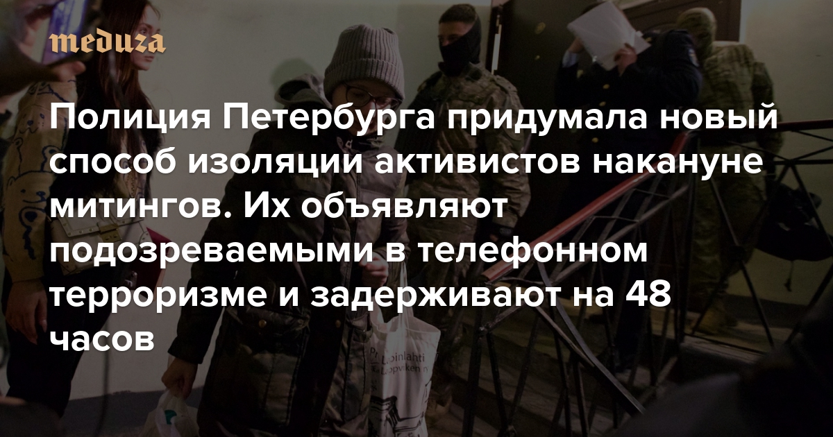 Полиция Петербурга придумала новый способ изоляции активистов накануне митингов. Их объявляют подозреваемыми в телефонном терроризме и задерживают на 48 часов