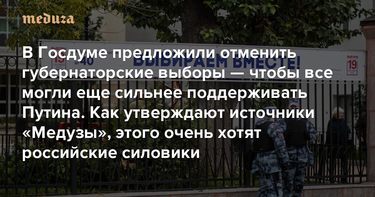 В Госдуме предложили отменить губернаторские выборы — чтобы все могли еще сильнее поддерживать Путина. Как утверждают источники «Медузы», этого очень хотят российские силовики