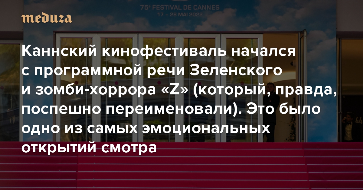 Каннский кинофестиваль начался с речи Зеленского и зомби-хоррора «Z» (который, правда, поспешно переименовали) Каким был первый вечер смотра, открывшегося во время войны