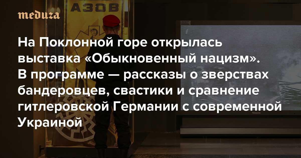 На Поклонной горе открылась выставка «Обыкновенный нацизм». В программе — рассказы о зверствах бандеровцев, свастики и сравнение гитлеровской Германии с современной Украиной Мы ознакомились с этой (очень странной) экспозицией
