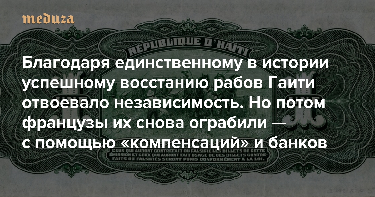 Благодаря единственному в истории успешному восстанию рабов Гаити отвоевало независимость от Франции Но потом французы их снова ограбили — с помощью «компенсаций» и банков