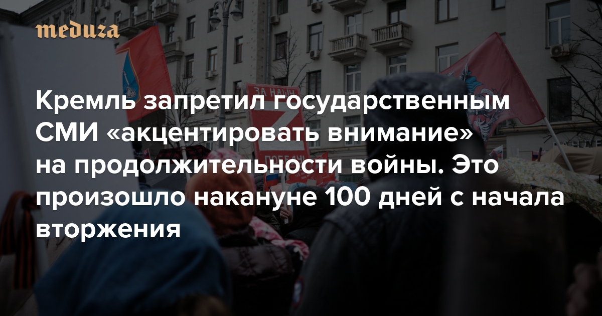 Администрация президента России «попросила» редакции государственных и провластных СМИ «не тиражировать тему 100 дней специальной военной операции» и «не акцентировать» внимание читателей и зрителей на продолжительности войны.