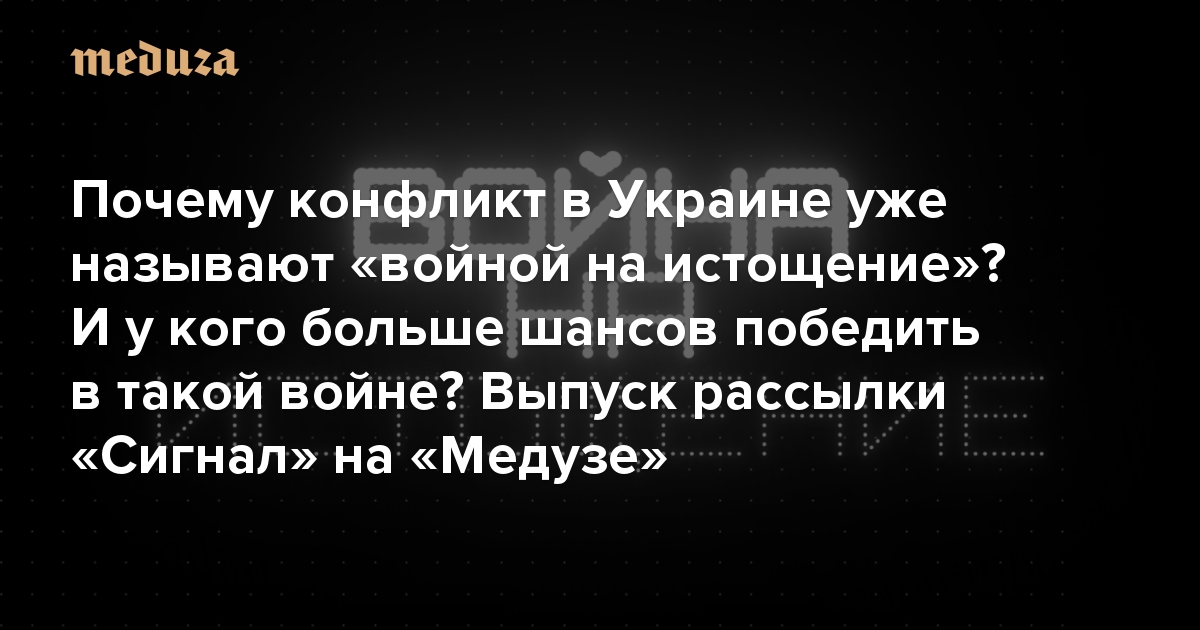 Почему конфликт в Украине уже называют «войной на истощение»? И у кого больше шансов победить в такой войне? Выпуск рассылки «Сигнал» на «Медузе»