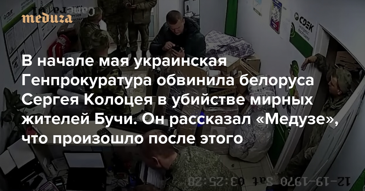 «Сказали выслать подтверждения моей непричастности на электронную почту» В начале мая украинская Генпрокуратура обвинила белоруса Сергея Колоцея в убийстве мирных жителей Бучи. Он рассказал «Медузе», что произошло после этого