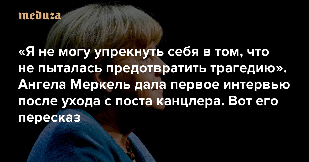 «Я не могу упрекнуть себя в том, что не пыталась предотвратить трагедию» Ангела Меркель дала первое интервью после ухода с поста канцлера. Вот его пересказ