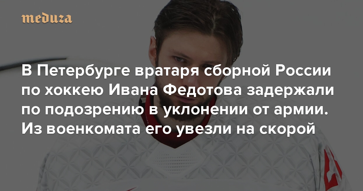 В Петербурге вратаря сборной России по хоккею Ивана Федотова задержали по подозрению в уклонении от армии Из военкомата его увезли на скорой