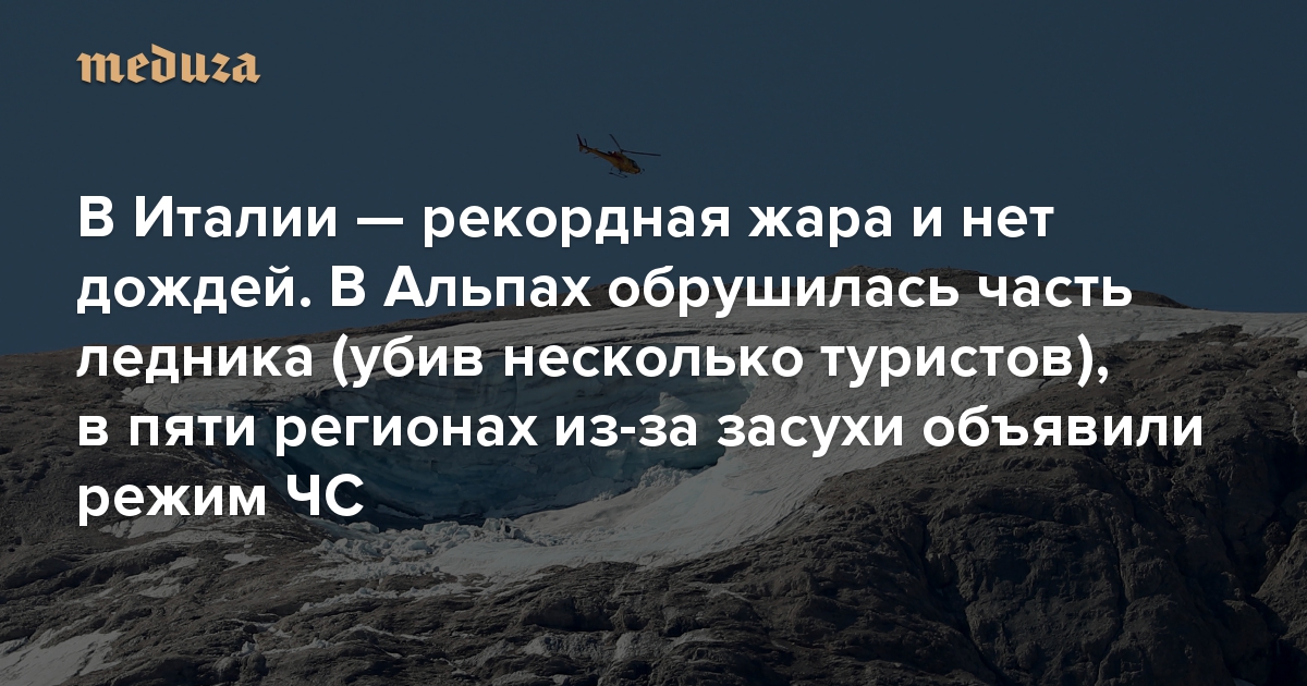 В Италии — рекордная жара и нет дождей. В Альпах обрушилась часть ледника (убив несколько туристов), в пяти регионах из-за засухи объявили режим ЧС
