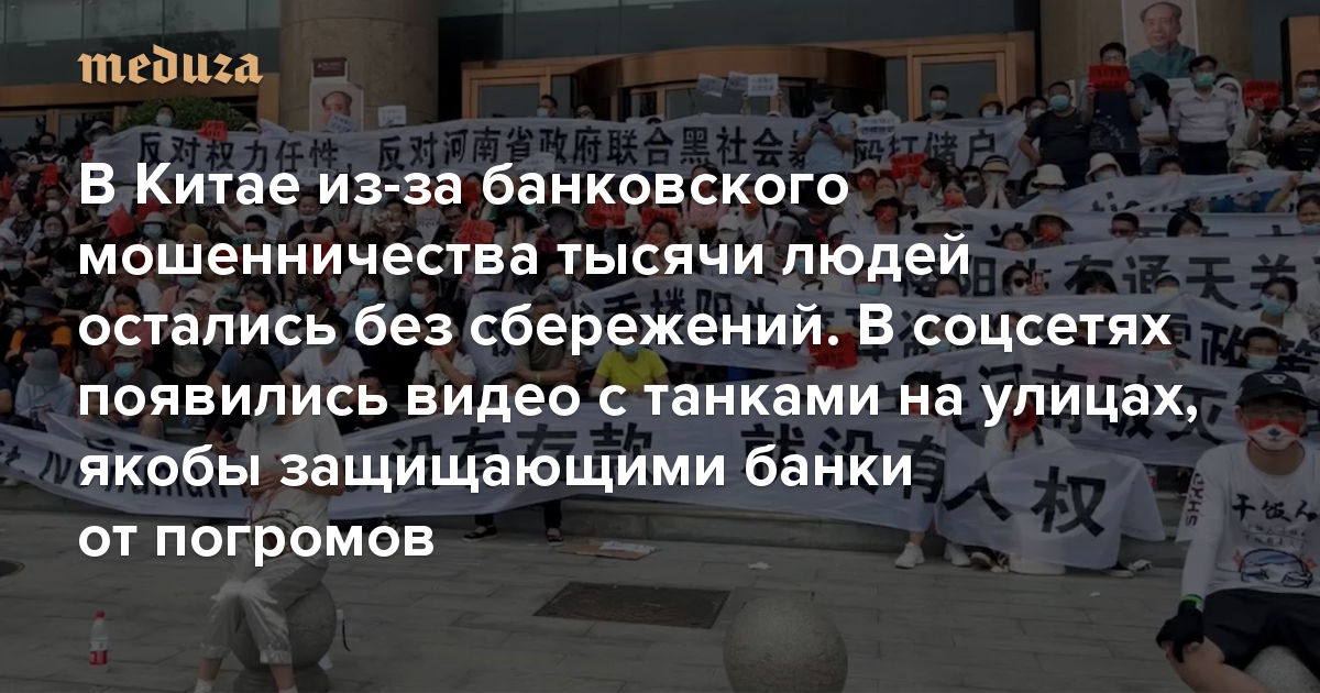 В Китае из-за банковского мошенничества тысячи людей остались без сбережений. В соцсетях появились видео с танками на улицах, якобы защищающими банки от погромов