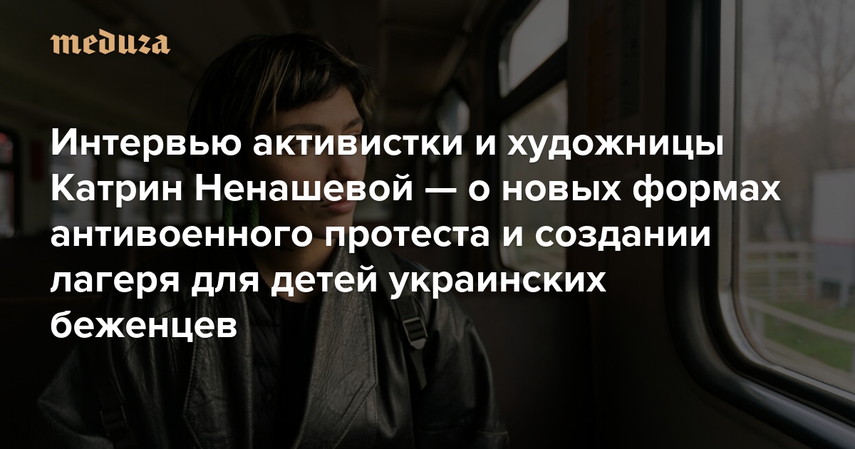 За семь лет деятельности арт-акционистка Катрин Ненашева создала и провела десяток проектов и акций — от месяца жизни в тюремной робе в поддержку женщин в российских тюрьмах до создания сообщества людей с психическими расстройствами «Психоактивно» и первой группы взаимопомощи для детей с наркотической зависимостью «Подростки и котики». С началом войны Катрин Ненашева перестала заниматься художественным акционизмом и полностью погрузилась в антивоенный активизм. «Медуза» поговорила с Катрин Ненашевой о новых формах протеста, анонимных комьюнити и создании первого в России городского лагеря для детей украинских беженцев.