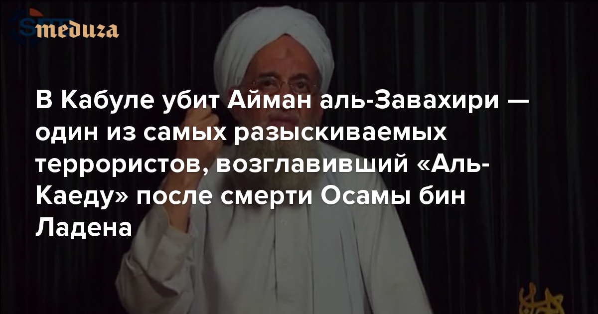В Кабуле убит Айман аль-Завахири — один из самых разыскиваемых террористов, возглавивший «Аль-Каеду» после смерти Осамы бин Ладена По дому аль-Завахири нанес удар американский беспилотник
