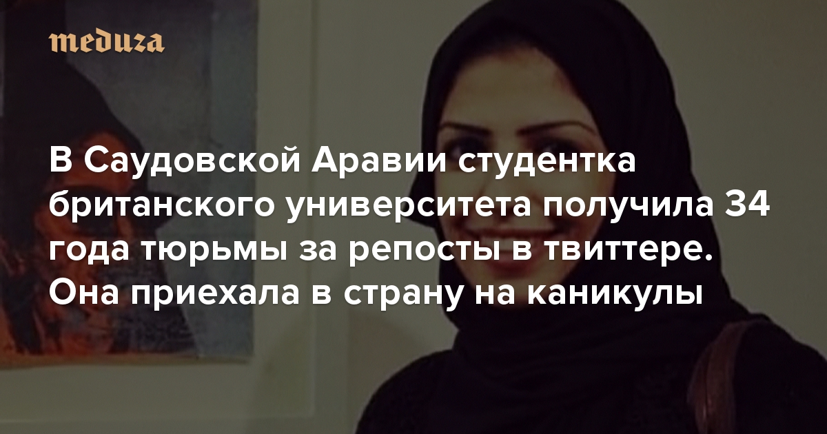 В Саудовской Аравии студентка британского университета получила 34 года тюрьмы за репосты в твиттере. Она приехала в страну на каникулы