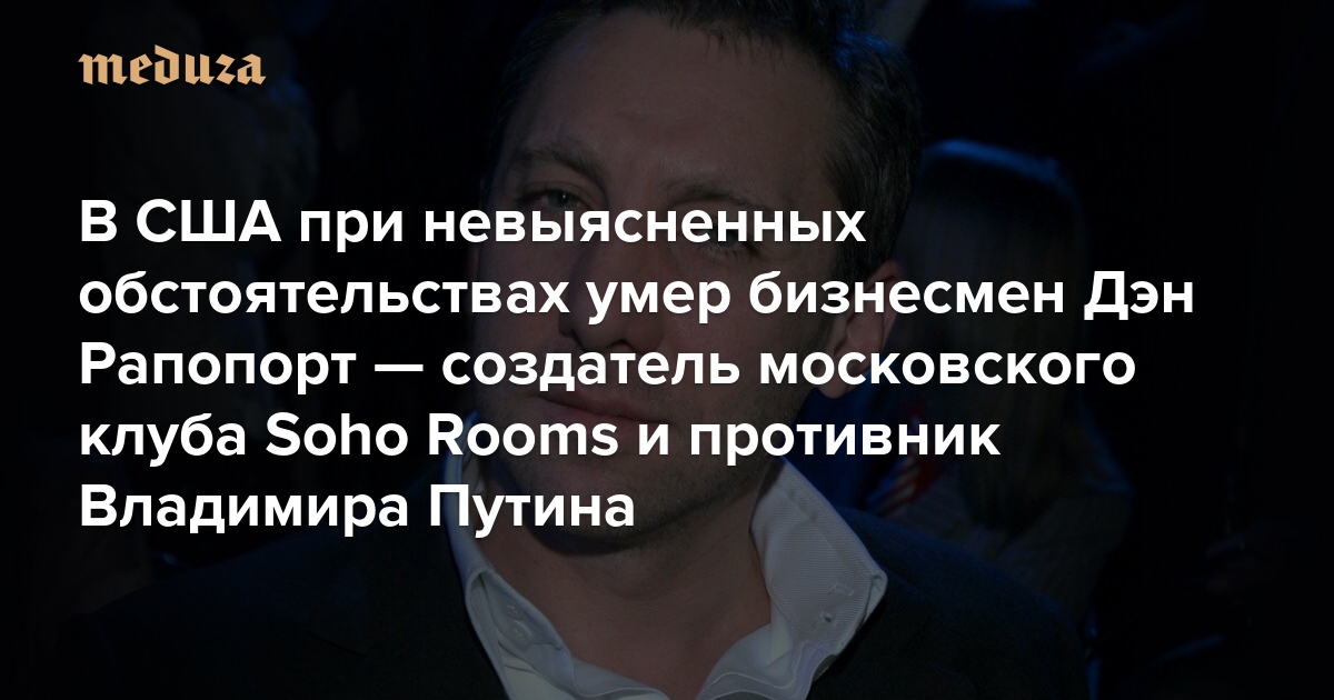 В США при невыясненных обстоятельствах умер бизнесмен Дэн Рапопорт — создатель московского клуба Soho Rooms и противник Владимира Путина