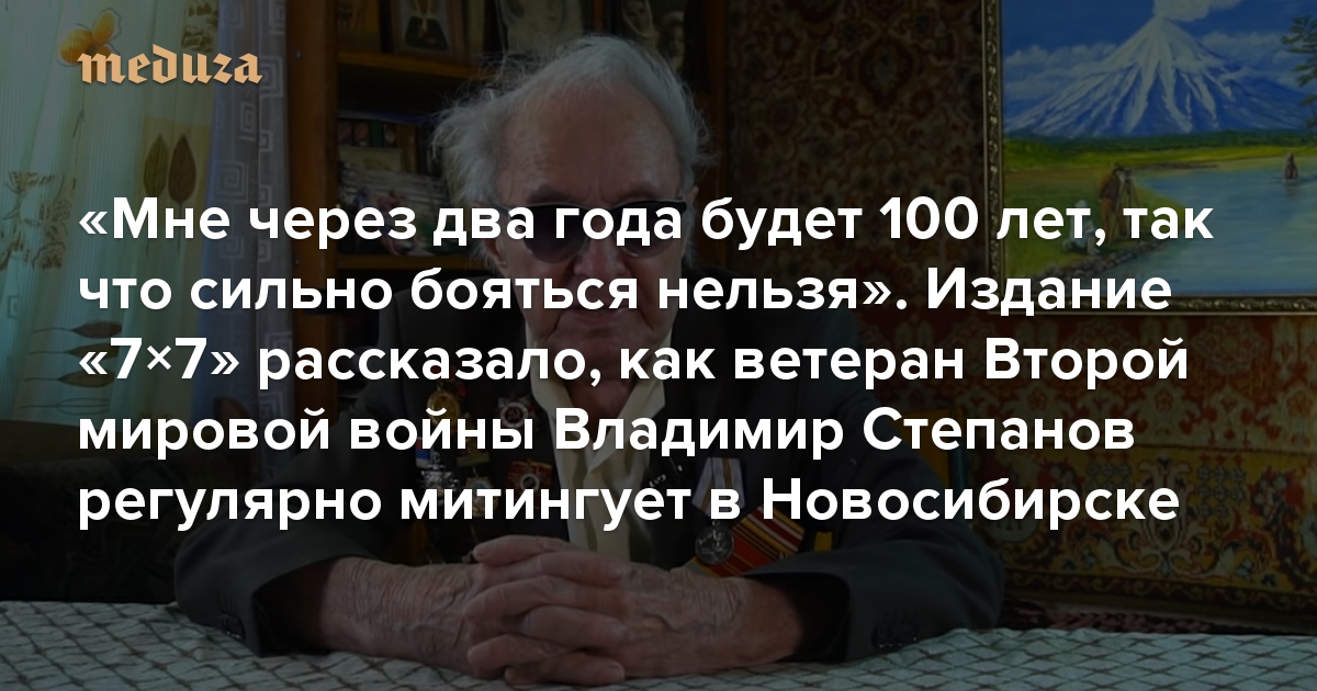 Издание «7×7» опубликовало текст про ветерана Второй мировой войны Владимира Степанова из Новосибирска, участника советской операции по завоеванию Курильских островов. Степанов больше 10 лет выходит на митинги и пикеты и судится с местными чиновниками. В июне его задержали из-за пикета с требованием расследовать хищения квартир. «Медуза» с разрешения редакции «7×7» публикует статью о Степанове целиком.