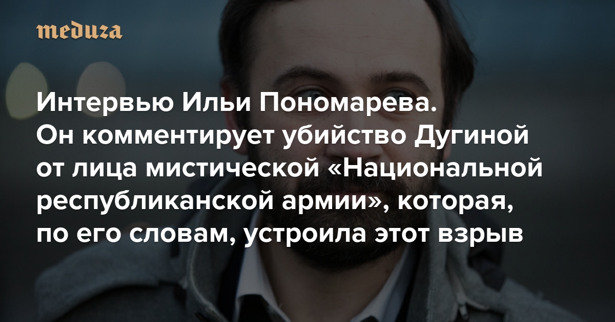 «Они видели, что в машину садятся два человека. И думали, что второй — Дугин» Интервью Ильи Пономарева. Он комментирует убийство Дугиной от лица мистической «Национальной республиканской армии», которая, по его словам, устроила этот взрыв