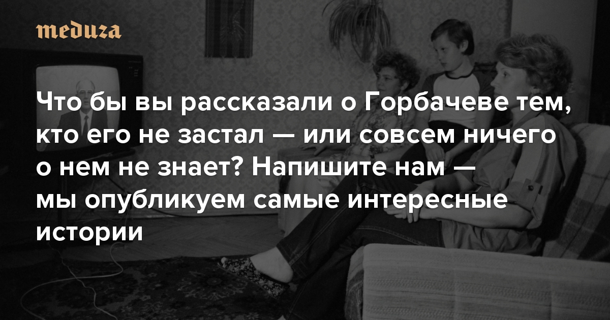 Кто такой Горбачев? Что бы вы рассказали о Горбачеве тем, кто его не застал — или совсем ничего о нем не знает? Напишите нам — мы опубликуем самые интересные истории